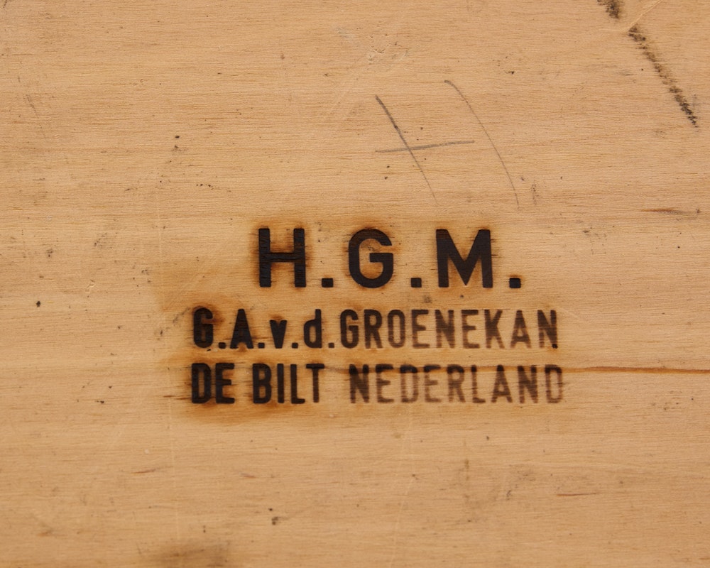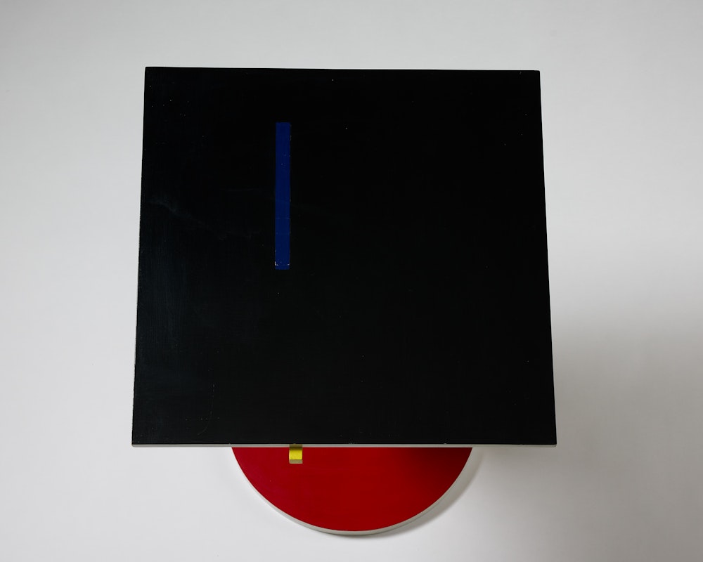 Made circa the 1960s in lacquered and laminated wood – painted in the primary palette of red, yellow, blue, black and white – the Groenekan table stands apart. The factory mark “G.A. v.d. GROENEKAN / DE BILT NEDERLAND” confirms its provenance. It is handmade, each joint visible, each brushstroke traceable to the craftsman’s hand. Where later editions, notably those produced by Cassina for mass-manufacture, adopt a more standardised production route, the Groenekan version retains the expressive nuance of the original vision — every border, every plane, every intersection a testament to Rietveld’s architectural thinking and Groenekan’s artisanal skill.