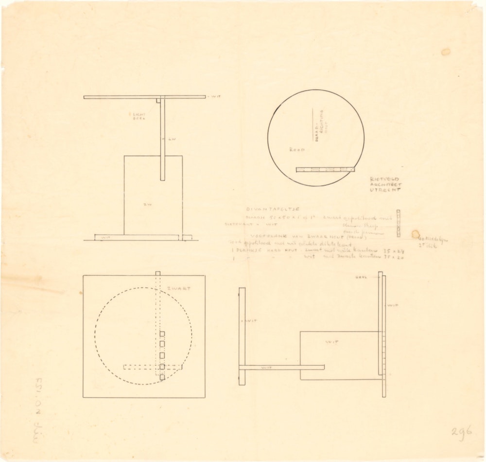 What elevates the Groenekan example further is its unique character. Unlike the more widely distributed Cassina versions, the Groenekan table was handmade in limited quantity, treated almost like a work of art rather than an off-the-shelf piece. In the context of the De Stijl movement, this emphasis on craftsmanship and the interplay of colour, form and function aligns perfectly: the table is both object and idea. It invites the user to sit beside it, but also to reflect on it. It invites use, but also contemplation.