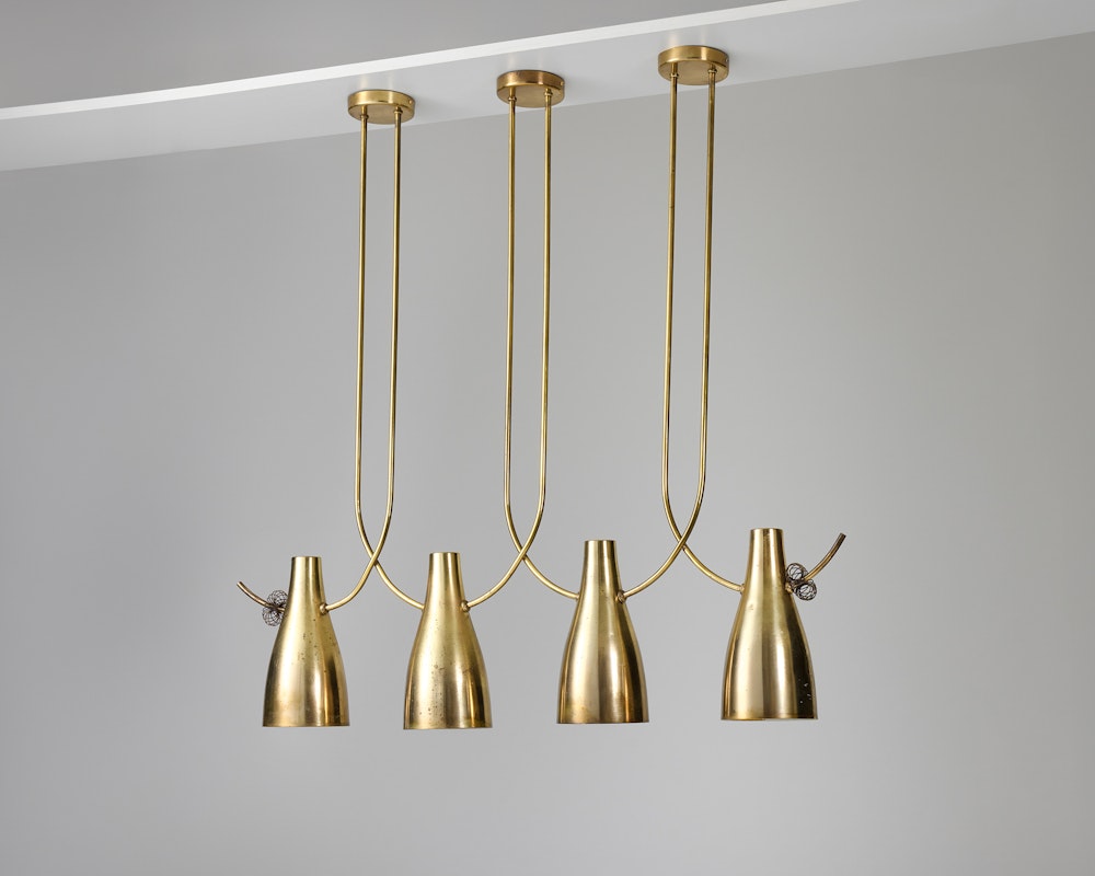 The Ceiling Lamp 10103/4, designed in the 1950s and featured in the Finland House catalogue 'Harmony in Lighting for Harmony in Living', extends that philosophy abroad. Created during the period when Tynell’s work illuminated interiors in New York — from Finland House on 50th Street to the United Nations Headquarters — it carries with it the optimism of post-war modernism, an era when Finnish design began to speak fluently to the world.