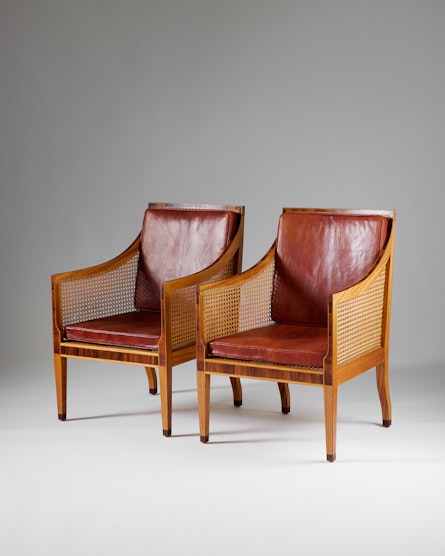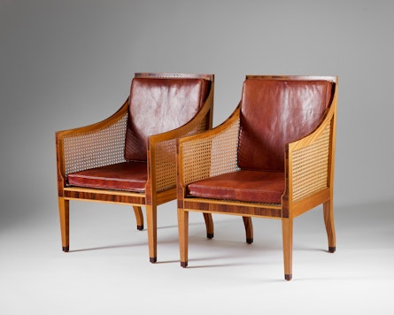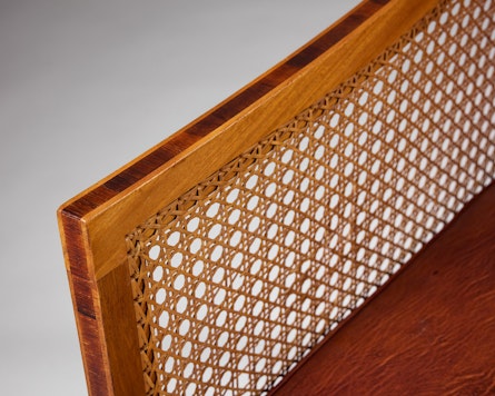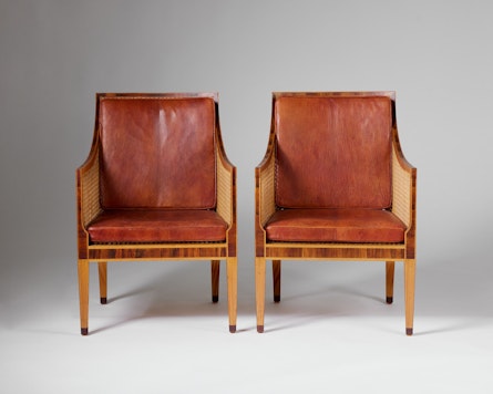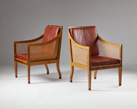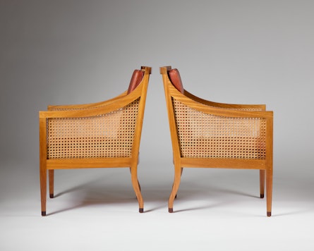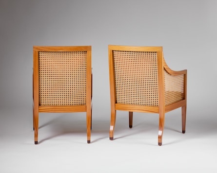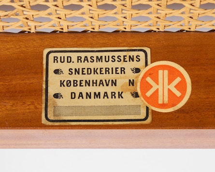 A stunning pair of the iconic Bergere chairs designed by t Kaare Klint. The chairs were produced by master cabinetmakers Rud. Rasmussen. This model was Klint’s take on the Classic 18th century Bergere style of European cane-backed armchairs and is often referred to as the ‘English Chair’.