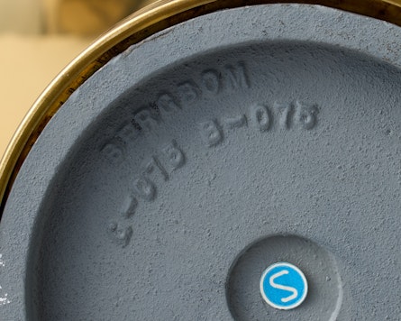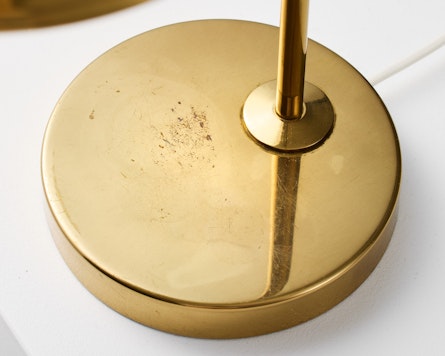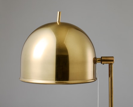 With their sculptural, bulbous shades and playful proportions, this pair of B-075 lamps is a striking example of Scandinavian mid-century lighting design. Both pieces are highly functional, featuring a simple construction and a small rod at the top of each shade that allows the light angle to be easily adjusted.