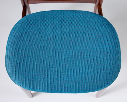 Rosewood, seats upholstered with turquoise wool