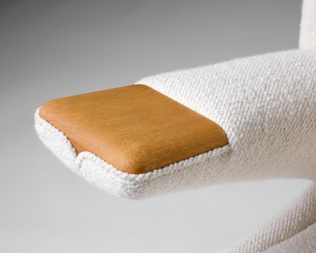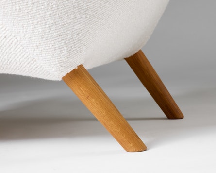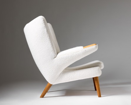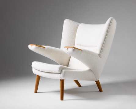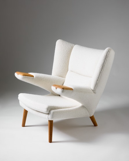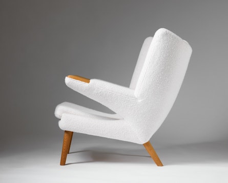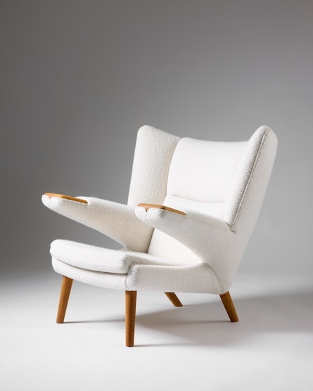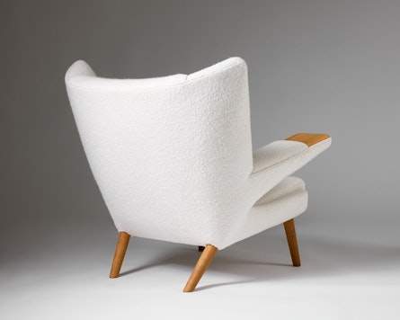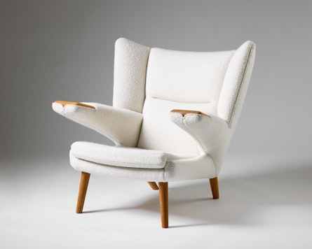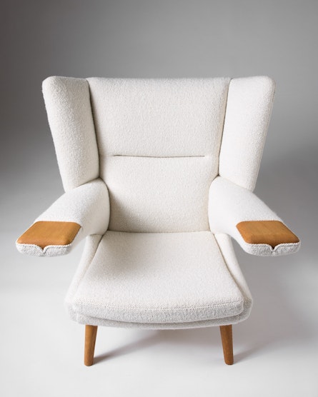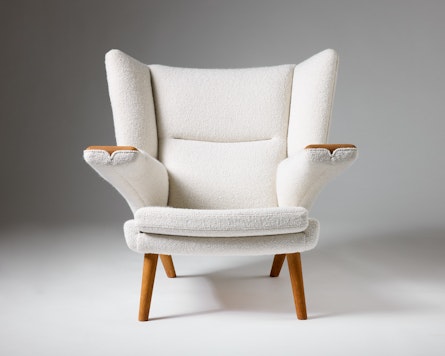 A rare, updated edition of the iconic Papa Bear chair, produced in a limited series, for the Danish brand AP Møbler. The “Bear Chair,” as it is also called, was designed by Hans J. Wegner in 1951 and became the first of his models to be produced by AP Møbler in 1953. This marked the beginning of a long-lasting collaboration between Wegner and the workshop’s craftsmen – a partnership that has shaped generations of Danish furniture production. The chair has a strong wooden frame structure, which is hand-upholstered with a multi-layer padding made entirely from natural materials.