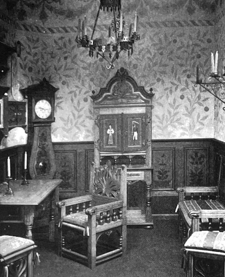 Lagerberg’s atelier, later noted for its collaboration with Ellen Key on her program exhibitions at the Stockholm Workers’ Institute, played an important role in connecting vernacular tradition with emerging modern design ideals. This chair reflects that transitional moment. It remains rooted in rustic allmoge references while exploring the new decorative languages that were gaining ground across Europe in the 1890s.
