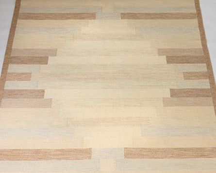 Boberg’s design combines modernist clarity with a handcrafted softness, resulting in a piece that feels both structured and organic. The muted shades of beige, cream, and light brown give the carpet a timeless quality, making it suitable for both contemporary and classic interiors.