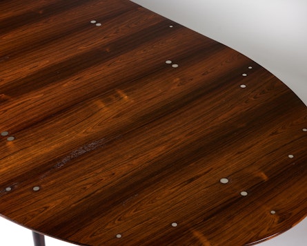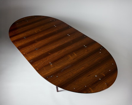 The “Judas” table takes its name from the silver inlays embedded in the top, which symbolise Judas’ betrayal of Jesus for thirty pieces of silver. At first glance, these inlays seem to exist only to contribute an element of decoration to the table. Their placement actually has the more sophisticated function of indicating how many people the table seats.