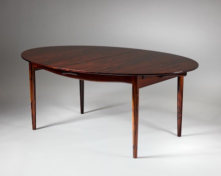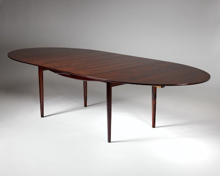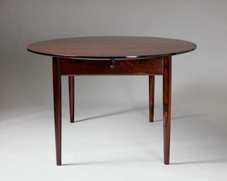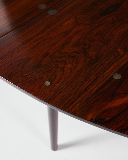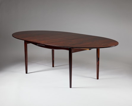 Finn Juhl, a central figure in mid-century Danish modernism, often explored how furniture could shape atmosphere as much as space. In the “Judas” table he achieves precisely that: an exclusive, thoughtfully detailed centrepiece that invites close observation while remaining eminently practical for everyday dining and conversation.