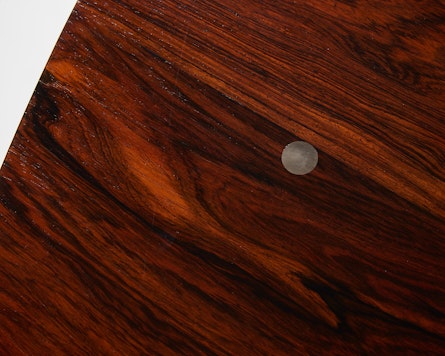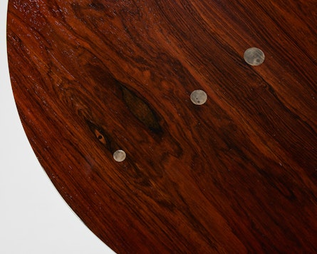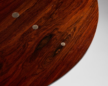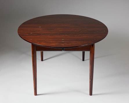 Named for its discreet silver inlays, Finn Juhl’s so-called “Judas” table is one of the most intriguing works of Danish modern furniture. Set into the richly grained wooden top are thirty small silver discs, a quiet allusion to the thirty pieces of silver in the biblical story of Judas’ betrayal. Rather than serving as mere ornament, these inlays are positioned around the perimeter to indicate individual place settings, transforming a moral tale into a subtle guide for how the table is used.