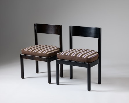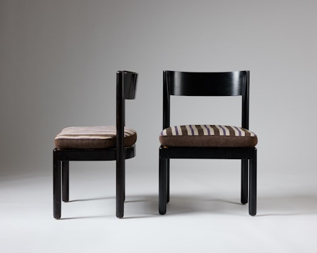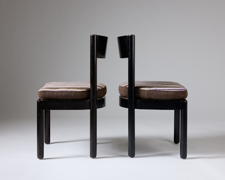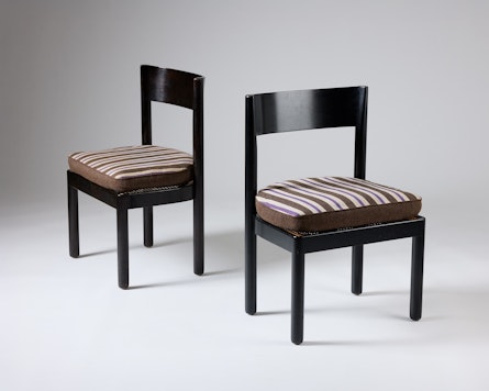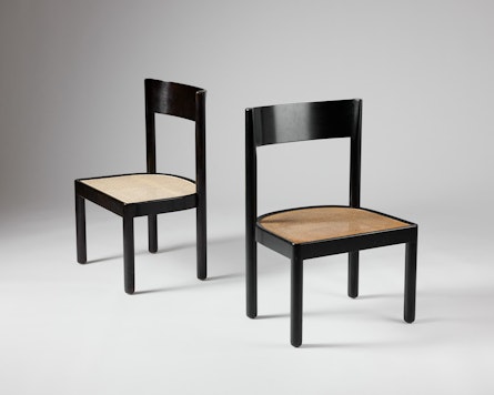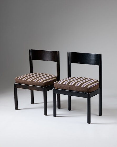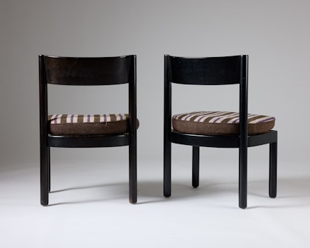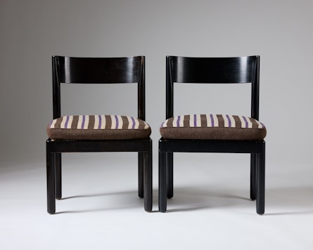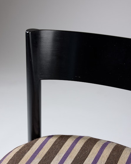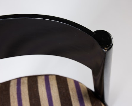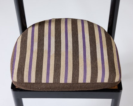Ebonised birch, seat in woven cane with a loose upholstered cushion