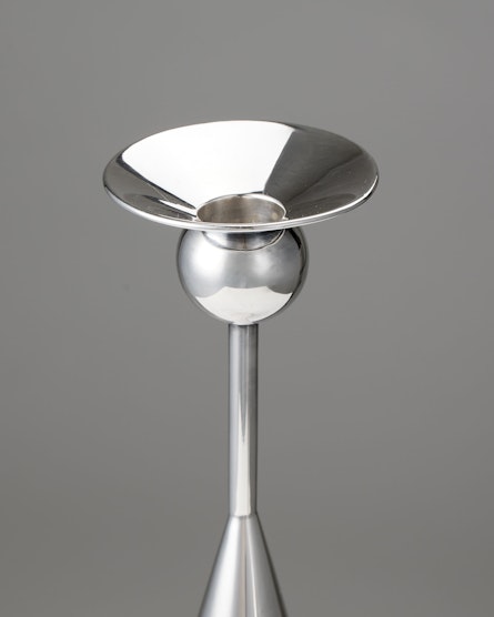 Blomqvist’s work reflects the Scandinavian pursuit of purity in both form and function. These candlesticks combine a sense of architectural clarity with the timeless beauty of hand-finished silver, making them emblematic of mid-century Nordic design aesthetics.