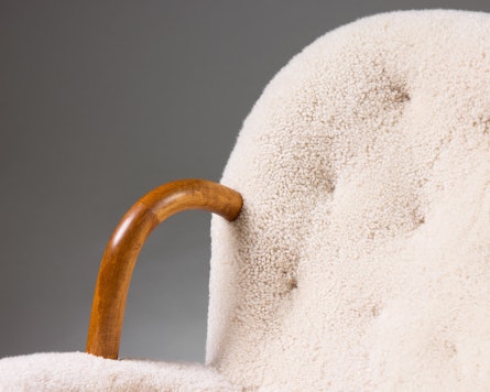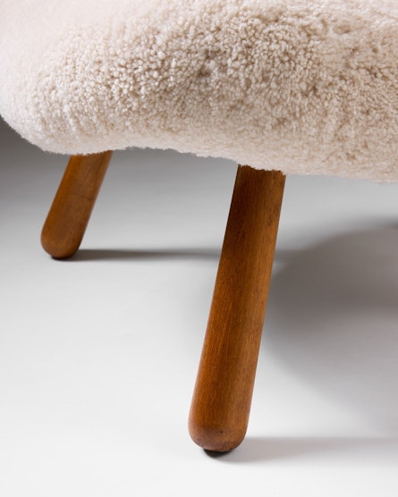 As the name suggests, the Clam Chair takes its inspiration from the organic shape of a seashell, with a seat and back that open invitingly around the sitter. The curved armrests and rounded legs in solid wood enhance its warm, organic character while showcasing the craftsmanship that defines Danish design of the period.