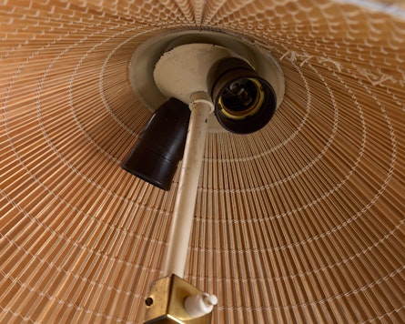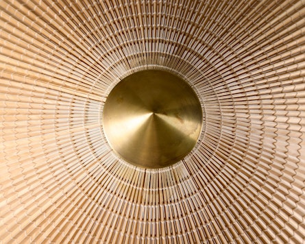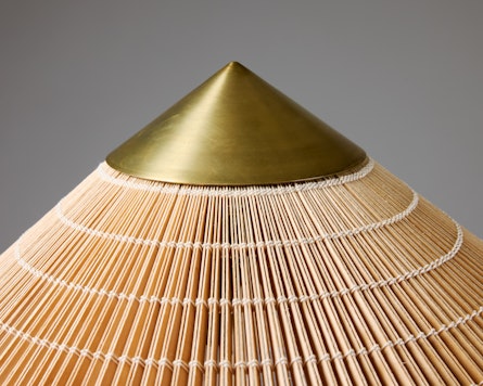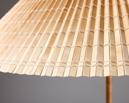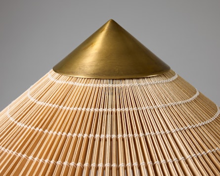 Floor lamp 9602, often referred to as the "Chinese Hat," was designed by Paavo Tynell in 1935 for the iconic Hotel Aulanko. Distinguished by its light, graceful shade and rattan-covered frame, the lamp combines refined elegance with a natural touch. The shade comes in a choice of canvas, rattan, or bamboo, allowing it to adapt to different interiors. Showcasing Tynell’s limitless creativity and exceptional craftsmanship, the 9602 embodies a timeless design language while remaining highly functional. Its soft, diffused glow brings a serene and inviting atmosphere to any space.
