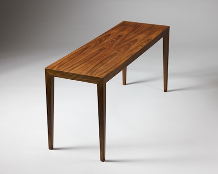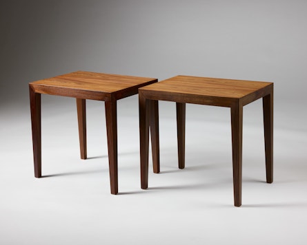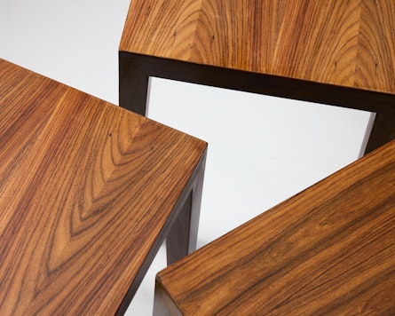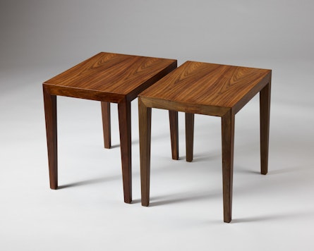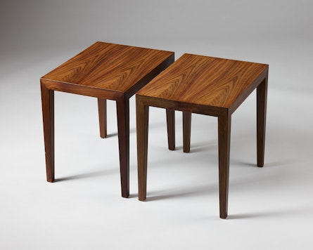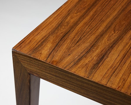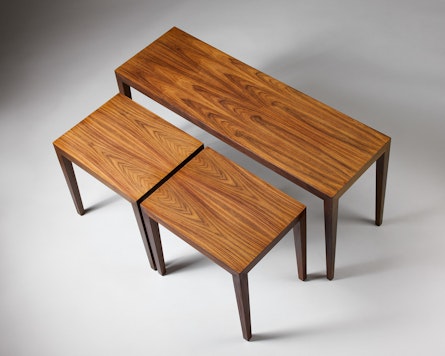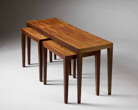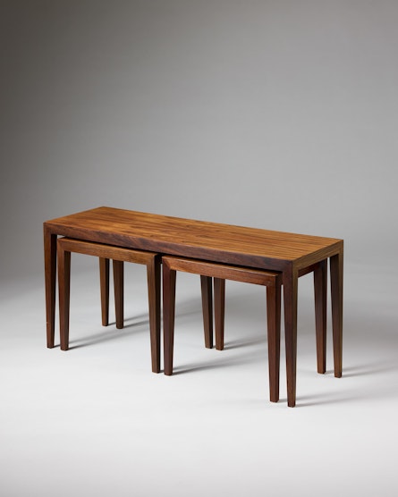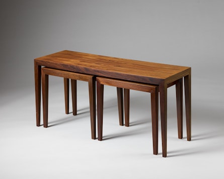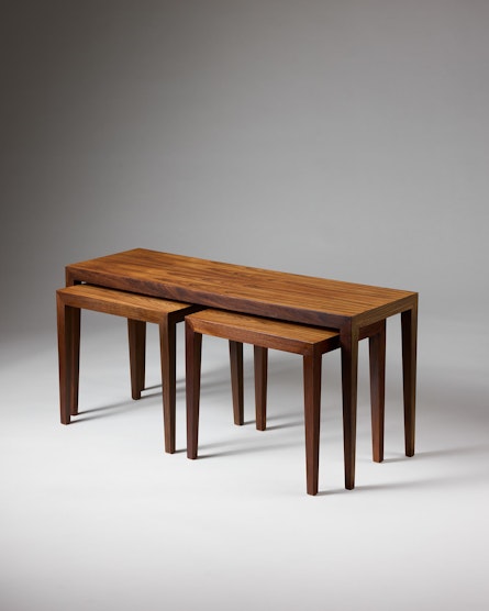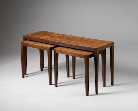 Three rosewood nesting tables comprising one large and two minor tables. Model 41A and 41B. Manufactured and marked by Haslev Møbelsnedkeri.
